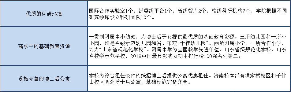 2.特别资助类博士后期满达到培养要求可应聘相关学科教师岗位,也可参与齐鲁青年学者等青年人才项目的遴选;