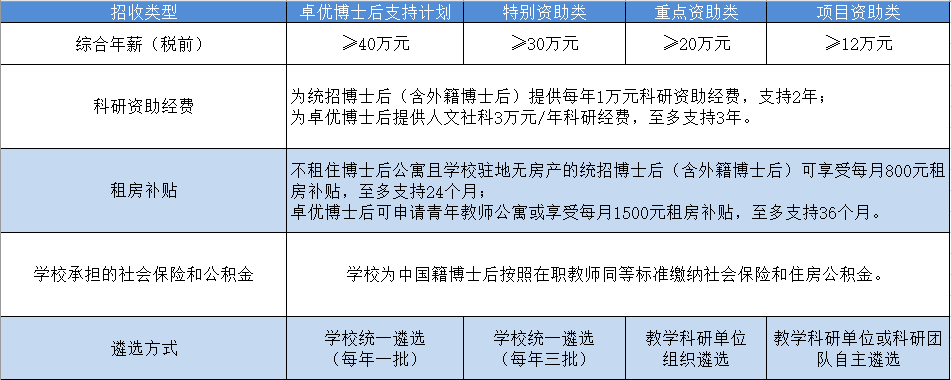 统招博士后实行年薪制,按招收类别分别提供相应薪酬待遇,最高年薪可达46万(含属地补贴)。