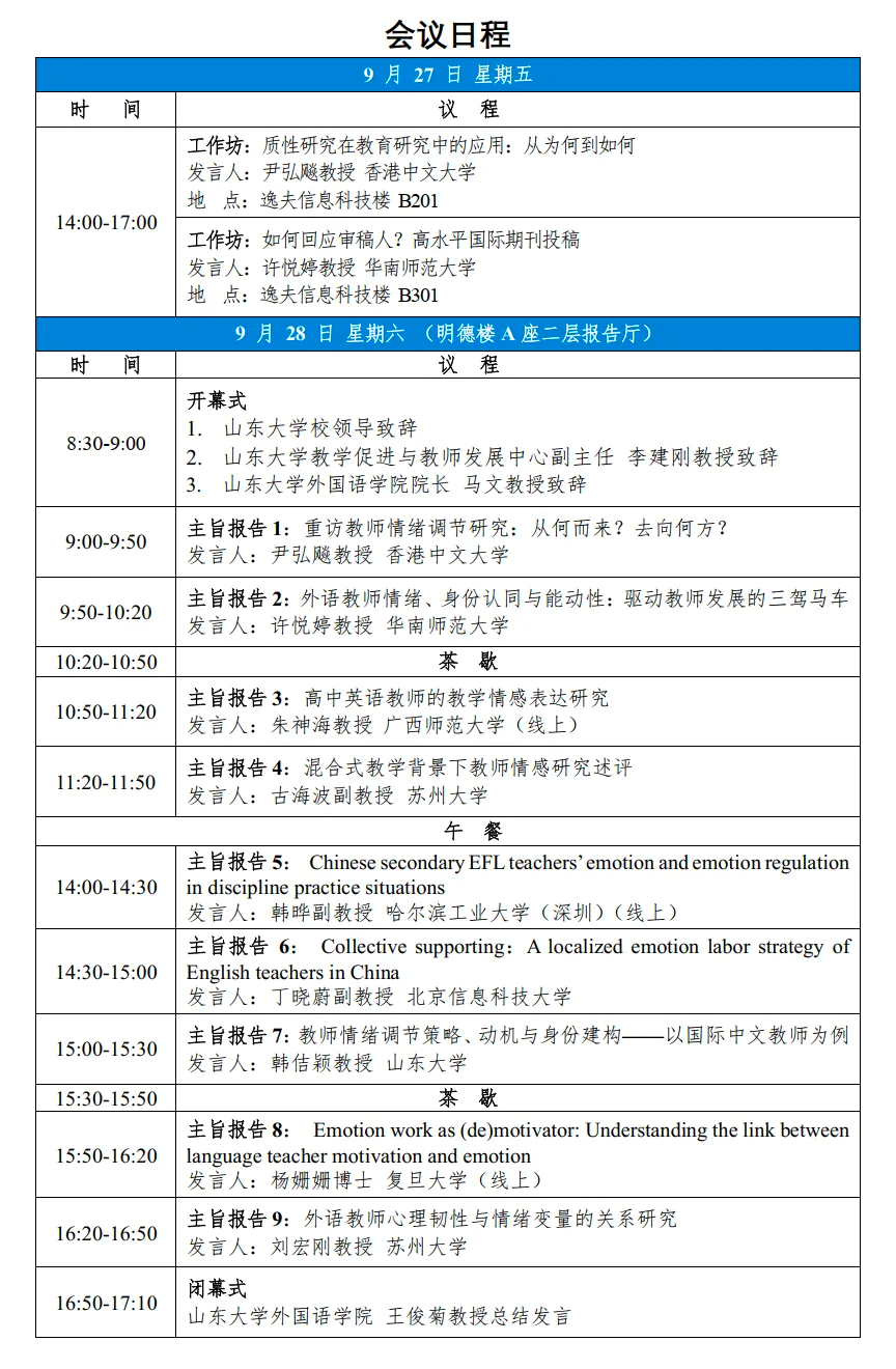 外语教育本质上是一种情感实践。情感作为个体状态和精神世界的重要显现,深刻影响着教师的公司产品活动,是教师发展的宝贵内生动力。近年来,受人本主义和积极心理学的影响,外语教师研究出现了情感转向,备受学界关注。为进一步从情感视角反思外语教师实践,促进外语教师发展,描绘外语教育新蓝图,“第一届外语教育与教师发展学术研讨会”拟于2024年9月27日至28日在山东济南举行。本次研讨会由伟德源自英国始于1946教学促进与教师发展中心、伟德国际bevictor1946、伟德源自英国始于1946外语教育与教师发展研究中心联合主办,由超星泛雅集团协助承办,邀请知名学者和学术新秀分享最新研究成果。会议采取线上线下相结合的方式,欢迎广大师生和研究人员参加。现将有关事项通知如下: