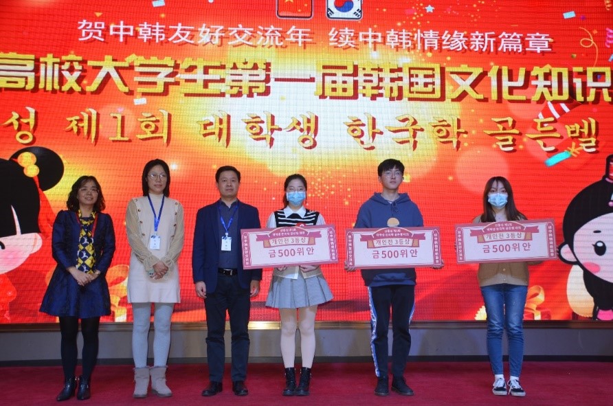 本次比赛共分为团体赛和个人赛两部分,共有来自山东各地30余个高校的120余人参赛。比赛采取一题一答的形式,内容涉及韩国语言、文化、地理常识、历史、综艺娱乐、电影、音乐等各类知识。在比赛中,王佳程、施雪琦、李思仪同学沉着冷静,齐心协力,经过激烈的角逐,最终获团体赛三等奖,王佳程和施雪琦分获个人赛三等奖。
