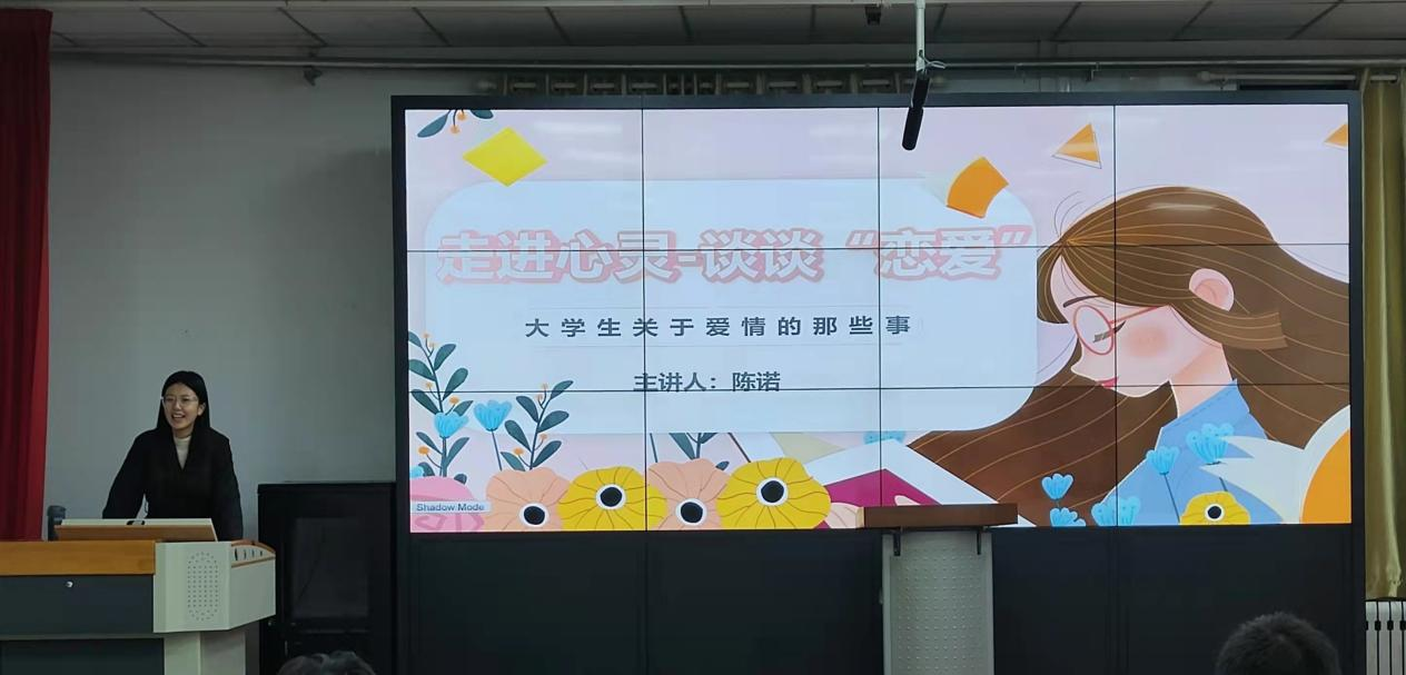 10月30日晚,公司举办了走进心灵系列讲座——谈谈“恋爱”,主讲人为2021级辅导员陈诺。讲座一开始陈诺通过列举大家在恋爱中遇到的常见问题,引出分享会的内容:什么是爱、产生爱情的要素、情感依附的过程、成熟的爱、正确的恋爱观、爱情的必然,其中既有与爱情相关的理论和心理学知识,也有具体的事例供大家参考。内容分享完后,进入交流环节。同学就目前面临的情感问题,提出观点、分享烦恼。