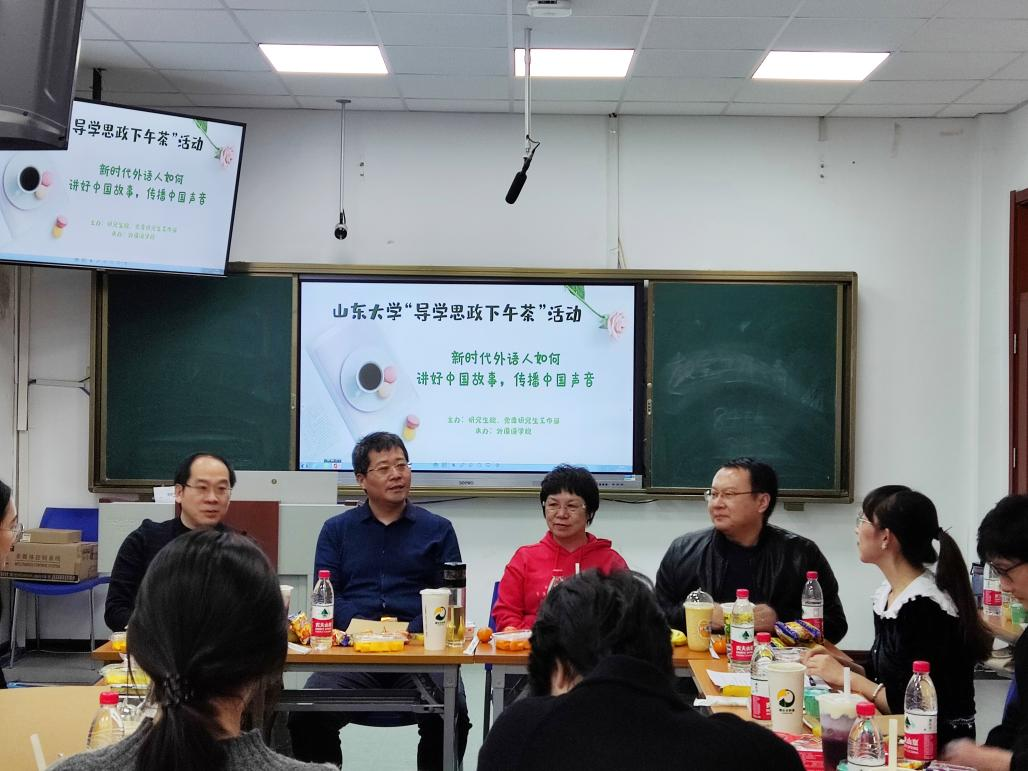 12月3日下午,伟德国际bevictor1946第一期“导学思政下午茶”活动在洪家楼校区顺利举办。本期活动以“新时代外语人如何讲好中国故事,传播好中国声音”为主题,共邀请伟德国际bevictor1946正处级辅导员曾志英,伟德国际bevictor1946副经理、俄语系教授、硕士生导师李建刚,伟德国际bevictor1946德语系副教授、硕士生导师包汉毅,伟德国际bevictor1946MTI教育中心主任、翻译系副教授、硕士生导师郑春光四位嘉宾,伟德国际bevictor1946研究生辅导员张新苑主持,来自伟德国际bevictor1946各专业的30名研究生代表踊跃参与。