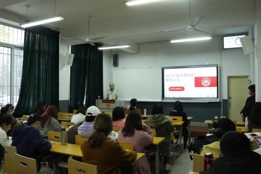 李成道老师首先对奖学金的由来进行了简短介绍,并公布了获得本次怡凡奖学金的员工名单。获奖同学分别为2020级研究生梁白金玉、尹英伊、牛钰雯、都田路、李嵘嵘,以及2020级本科生兰燕佳、高誉津、董志涛、李亚楠、余彤。