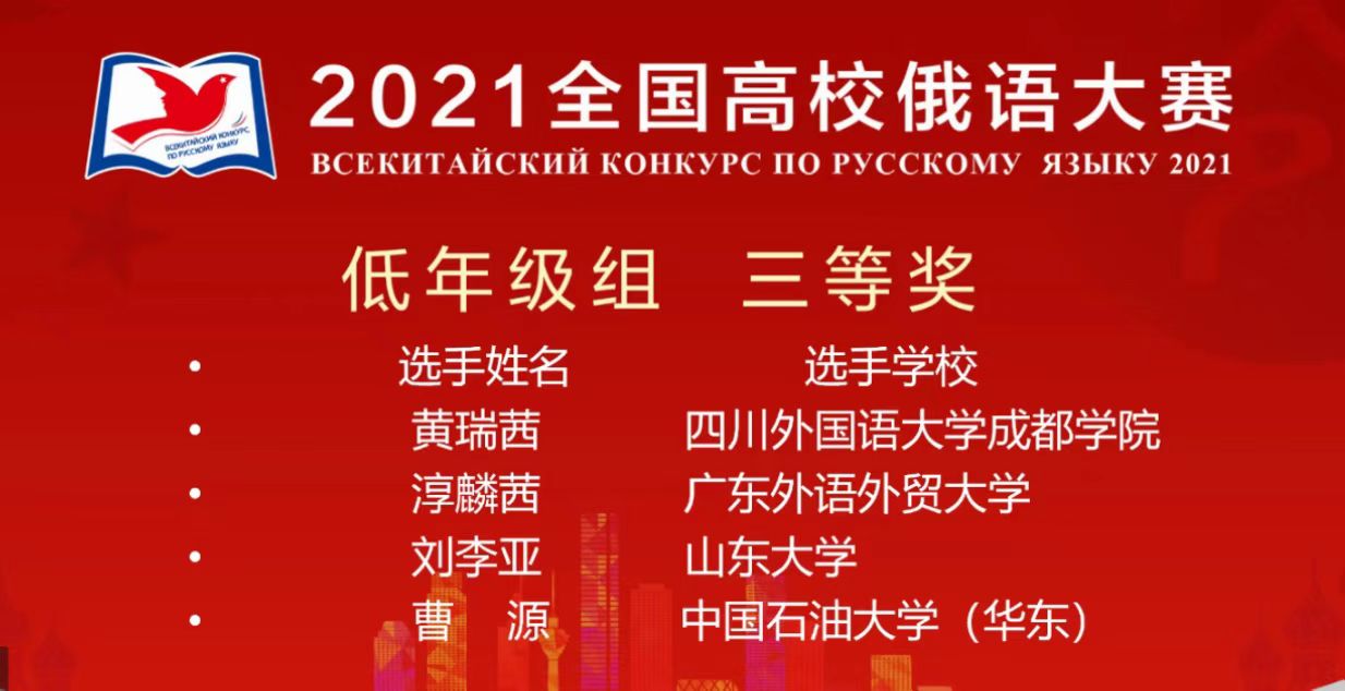 2022年4月23-24日,由中国教育部主办、辽宁省教育厅协办、大连外国语大学承办的第十四届全国高校俄语大赛复赛及决赛通过线上方式顺利举行。经过激烈角逐,公司2020级本科生刘李亚斩获大赛低年级组三等奖,将由国家留学基金委全额资助赴俄罗斯留学一年。