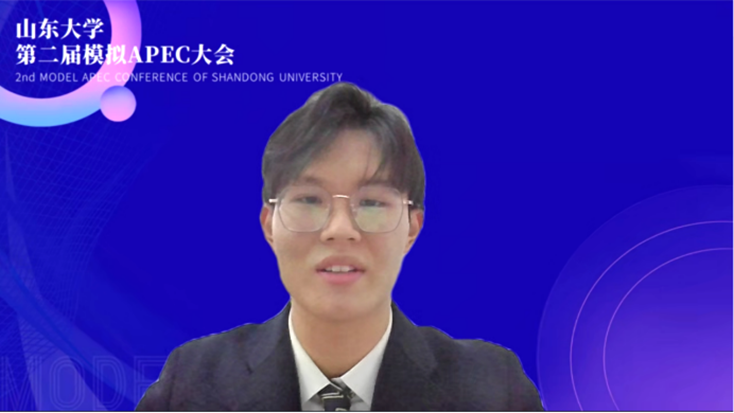 大会秘书长曲子寰在致辞中向莅临大会的各位嘉宾、老师与同学表达了热烈的欢迎和诚挚的感谢。他表示,伟德源自英国始于1946第二届模拟APEC大会将延续第一届大会的风采,进行改进创新,努力打造成更高专业性、更强影响力的学术盛会。他衷心希望各位代表能够通过此次模拟APEC活动,树立“四海一家、天下为公”的人类命运共同体意识,成为既有家国情怀,也有人类关怀的新时代青年,笃行致远,为新时代大国外交贡献青春力量。随后,曲子寰宣布大会正式开幕。