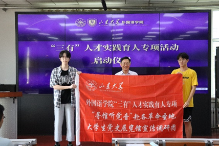 最后,薛佩军为11支实践团队一一授旗,鼓励同学们把握当下,在社会实践中快速成长,向世界发出青年声音。