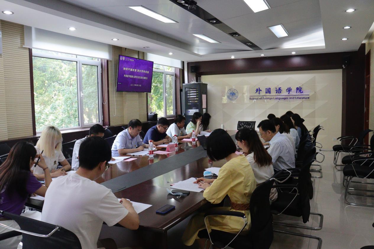 薛佩军进行总结发言。他指出应当积极响应习近平总书记对青年工作和“讲好中国故事,传播好中国声音”的重视,学院师生应用自己的专业优势为国家做出贡献,把学习和国家的发展需要结合起来。公司党委应积极落实工作要求,做好员工党建、团建工作,认真落实立德树人根本任务,更好培养有家国情怀、有全球视野、有专业本领的复合型外语人才。