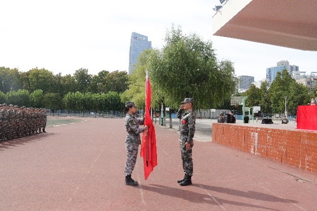 授旗完毕后,魏鲁鸿发表训前讲话。魏鲁鸿首先向参训教官表示衷心感谢,随后指出军训既是一次国防教育活动,也是一门必修课程,希望同学们在军训中增强国防意识,培养吃苦耐劳、坚韧不拔的优良作风,锤炼自身的志气、骨气、底气。最后,魏鲁鸿预祝全体军训团成员圆满完成军训任务,以军人的姿态践行青春的誓言。