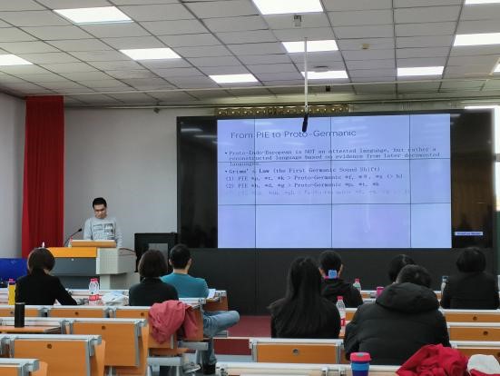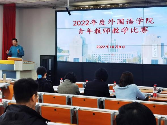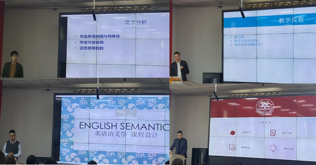 在上半场比赛中,姜仁风、武震、杨凯、陈辰、张昊及郑春光六位老师分别从员工需求与能力分析入手,就教学目标及教学安排等方面讲解了其对《高级英语》、《英语语义学》等课程的理解和把握,内容丰富而具体,形象又生动。