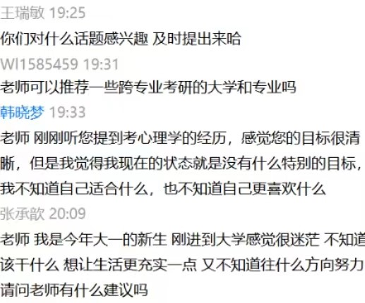 举办线上主题沙龙,助力生涯规划。公司Sunny Mood 阳光导航心理协会举办“语后春笋”系列心理沙龙,邀请曾任北京师范大学心理学部党委副书记、2000级员工王瑞敏为新生做以“漫谈老员工生涯发展”为主题的教育讲座。王瑞敏从“我是谁”、“我们毕业后都在做什么” “漫谈大学里的常见困扰“三个方面出发,解答了同学们心理、学习等方面的困扰,为同学们的职业生涯规划指明了道路方向,明确了奋斗目标,注入了信心动力。
