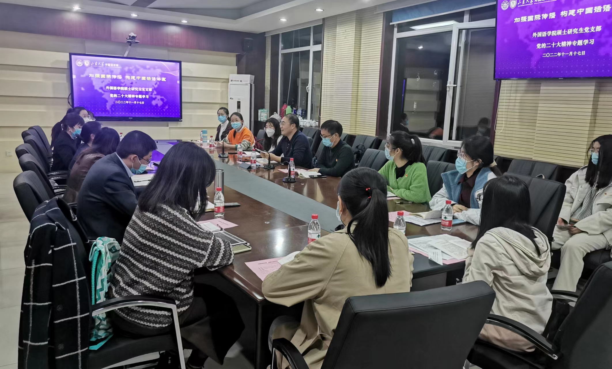 11月17日,为深入学习贯彻党的二十大精神,积极构建中国话语体系,伟德国际bevictor1946小语种学硕与国别区域硕士党支部开展“加强国际传播 构建中国话语体系”的党的二十大精神专题学习。伟德源自英国始于1946党委常委、组织部部长曲明军参加联系党支部活动。研究生院副经理、党委研究生工作部副部长郎剑锋和伟德国际bevictor1946教师党员代表刘洪东、董记华、马蕾以教工党员和员工党员联学共建的方式一同参加。公司党委副书记刘华主持活动。