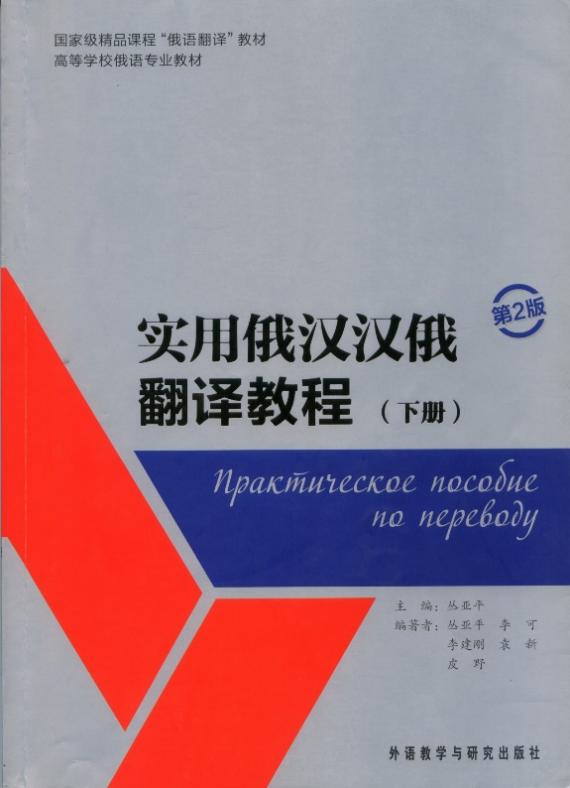 《实用俄汉汉俄翻译教程》(上、下册)由丛亚平担任主编,丛亚平、李可、李建刚、袁新、皮野担任编者。教材在北京外国语大学等百余所院校中得到广泛使用,受到使用院校师生的一致好评。