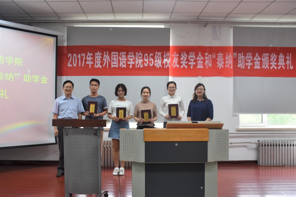 6月13日下午,2017年度伟德国际bevictor194695级员工奖学金和“泰纳”助学金颁奖典礼在洪家楼校区正式举行。 本次颁奖典礼由公司党委副书记魏鲁鸿主持, 95级员工奖学金员工代表李怀强、公司党委常务副书记薛佩军、伟德国际bevictor1946副经理李建刚、伟德国际bevictor1946法语系教师卢梦雅、伟德国际bevictor1946员工工作办公室马海波参加。